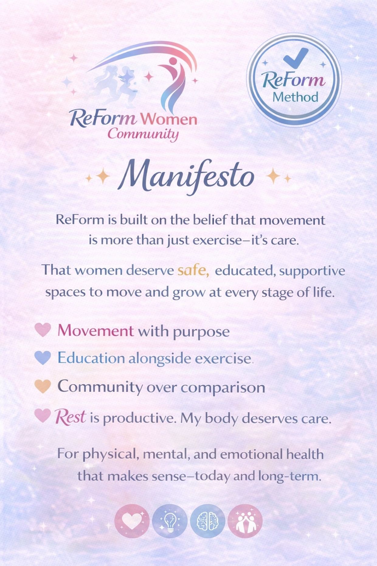 We believe exercise should be educational, inclusive, and supportive, not intimidating or one-size-fits-all. Through the ReForm Method, we combine expert-led movement with real understanding of the body, helping people build strength, resilience, and trust in themselves.